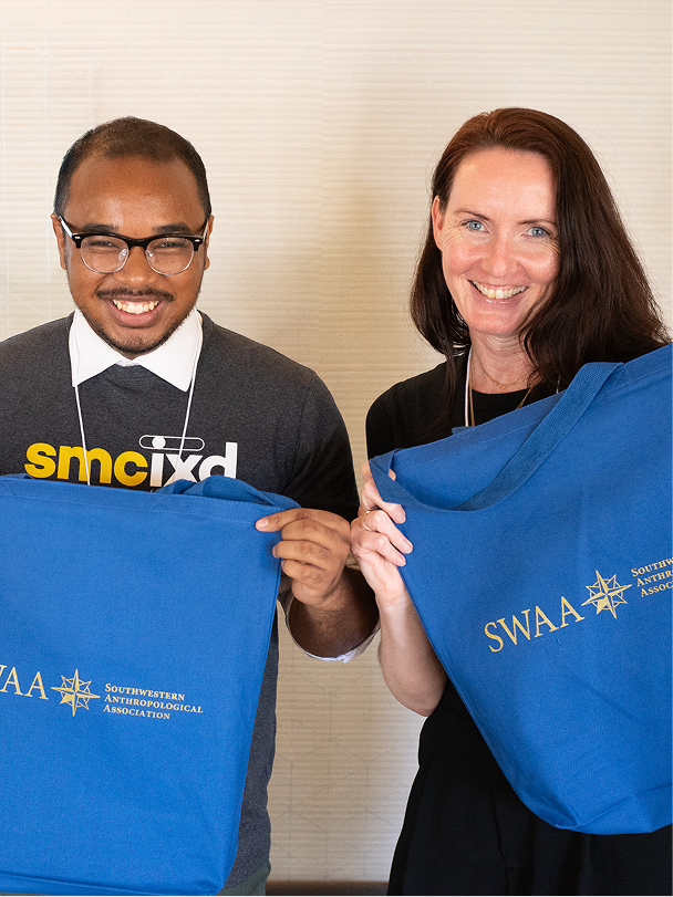 IxD students Romell McKenzie and Sandi Piorek, alongside faculty Eric Minzenberg and Gillian Grebler, presented at the SWAA Anthropology Conference. They shared insights from the program’s first anthropology course, exploring SMC’s campus and community garden as “third spaces” through ethnographic design research.